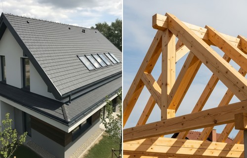 Krovy, laťování, střešní krytiny (betonové, pálené, plechové). Opravy a výměny poškozených částí střech, klempířské prvky a tesařské práce.